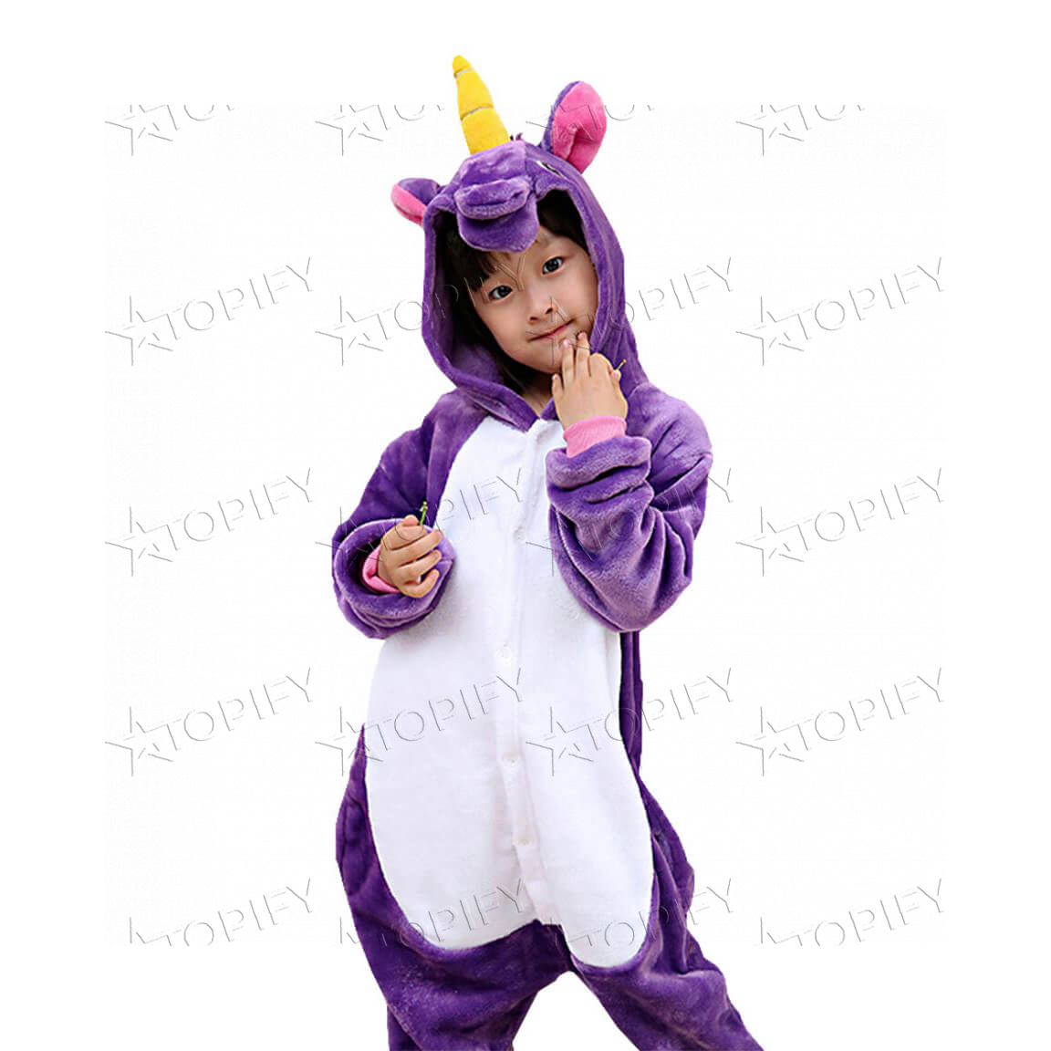 Пижама-кигуруми Фиолетовый Единорог представляет собой комбинезон свободного кроя с капюшоном. Спереди застёгивается на пуговицы, сзади имеется дополнительная застёжка-молния. Тёплый и мягкий на ощупь. Материал - 100% полиэстер.